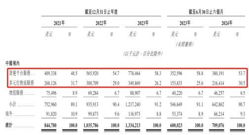 货运平台服务主要指,通过在线平台匹配及履行商户和司机之间的货运交易。收入主要来自司机会员费及司机履行完运输订单后向其收取的佣金。该业务为货拉拉最大的收入来源,报告期内相关境内收入分别为4.09亿美元、5.66亿美元、7.78亿美元、3.8亿美元。受货拉拉模式变化影响,自2022年起,该业务佣金收入占比超过司机会员费。