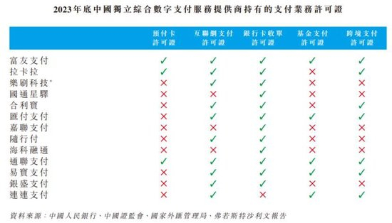据统计,截至2023年末,在186家拥有《支付业务许可证》的第三方支付服务提供商中,仅40家持有基金支付许可证,仅24家获授权提供跨境数字支付服务。