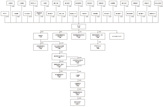 林先生控制的员工持股计划平台上海蔚清、上海蔚澜、上海蔚镜分别持股4.49%、1.48%、1.43%;