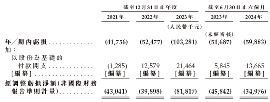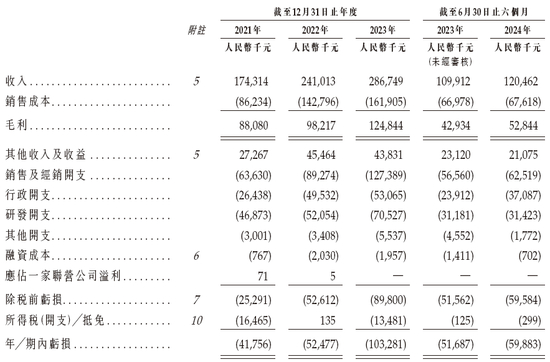 招股书显示,在过去的2021年、2022年、2023年和2024年上半年越疆科技的营业收入分别为人民币1.74亿、2.41亿、2.87亿和1.20亿元,相应的净亏损分别为人民币4175.6万、5247.7万、10328.1万和5988.3万元,相应的经调整净亏损分别为人民币4304.1万、3989.8万、8181.7万和3497.6万元。