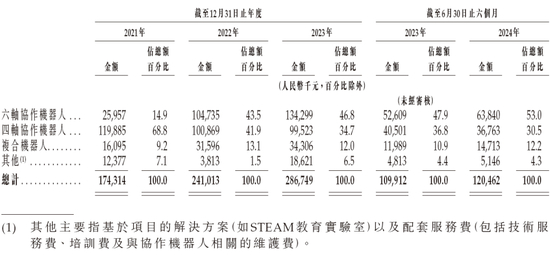 越疆科技的协作机器人按轴数主要分为四轴协作机器人(Magician系列及M系列)、六轴协作机器人(CR系列及Nova系列)。此外,为满足客户对不同自动化解决方案的需求,公司已设计并推出复合协作机器人,以轻松应对各个行业中的特定使用场景,例如码垛、焊接、移动操作及职业培训。于往绩记录期间,越疆科技在全球售出超过5.3万台协作机器人。