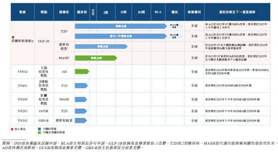银诺医药所有的候选药物均自行开发,截至2024年11月24日,银诺医药已建立一条管线,包括: