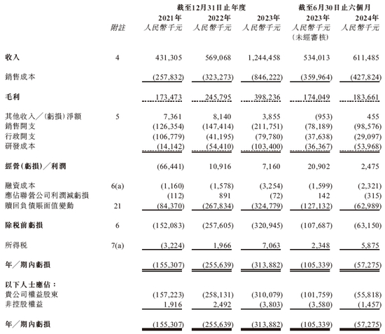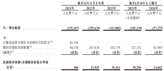 招股书显示,在过去的2021年、2022年、2023年和2024年前六个月,健康之路的营业收入分别为人民币4.31亿、5.69亿、12.44亿和6.11亿元,相应的净亏损分别为人民币1.55亿、2.56亿、3.14亿和0.57亿元,相应的经调整净利润分别为人民币48.6万、2,391.9万、3,941.1万和1,484.2万元。