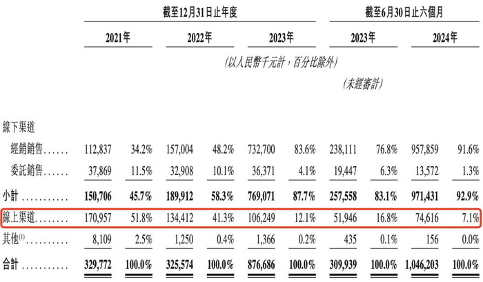 布鲁可主要靠的是线下走量,招股书显示,2022年、2023年及2024年上半年,线下经销销售额分别占总收入的48.2%、83.6%及91.6%,且这些线下网点主要集中在二三线及以下城市。在线下渠道遇冷的今天,布鲁可在线上开设了京东、天猫和抖音旗舰店,但不同店铺和款式的销量都不够稳定。