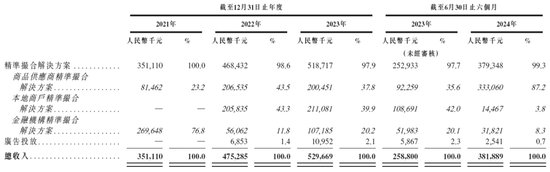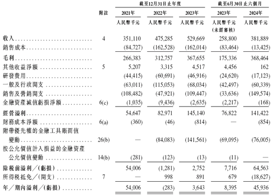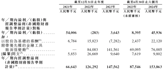 招股书显示,在过去的2021年、2022年、2023年合2024年前六个月,量化派的营业收入分别为人民币3.51亿、4.75亿、5.30亿和3.82亿元,相应的净利润分别为人民币5,400.6万、-28.3万、364.3万和4593.6万元,相应的经调整净利润分别为人民币0.67亿、1.26亿、1.48亿和1.54亿元。