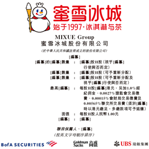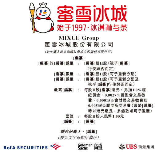 蜜雪冰城,连续两年第一家递交IPO招股书,有望年内香港上市,美林、高盛、瑞银联席保荐