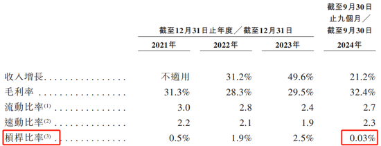 加上2022年9月A股和2024年1月港股的上市申请,此次已经是蜜雪冰城第三次冲刺IPO了。从蜜雪冰城披露的最新招股说明书(申请版本,下同)来看,公司实际上并不差钱,报告期内(2021年至2023年,及2024年前9月)其营业收入和净利润持续快速增长,截至2024年9月末账上趴着近60亿元现金,而杠杆率竟低至0.03%。
