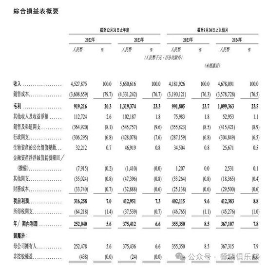 招股书显示,2021年-2023年及2024年前三季度,老乡鸡分别实现收入28.59亿元、45.28亿元、56.51亿元、46.78亿元,同期,净利润分别为1.35亿元、2.52亿元、3.75亿元、3.67亿元。
