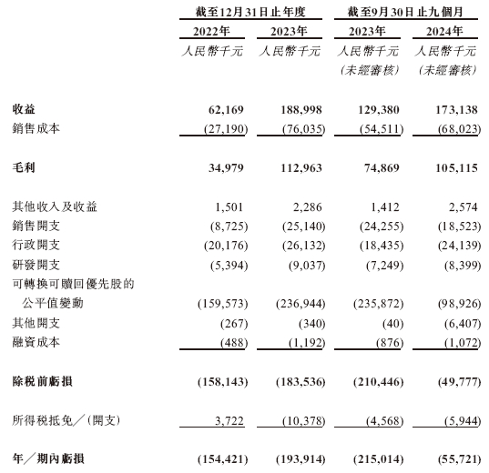 招股书显示,在过去的2022年、2023年和2024年前九个月,问止中医的营业收入分别为人民币0.62亿、1.89亿和1.73亿元,相应的净亏损分别为人民币1.54亿、1.94亿和0.56亿元,相应的经调整净利润分别为人民币515.2万、4303.0万和4950.7万元。