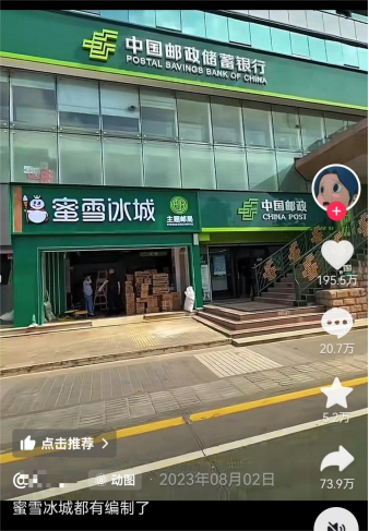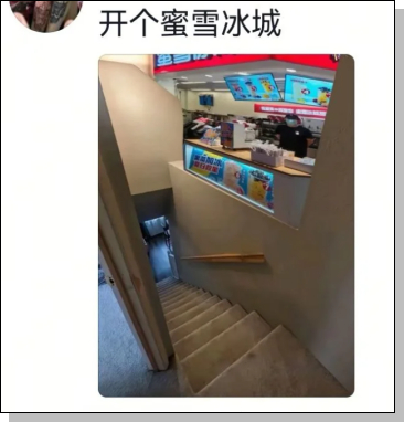 网友们爱开玩笑,说再小的地方都能租给蜜雪冰城开店。
