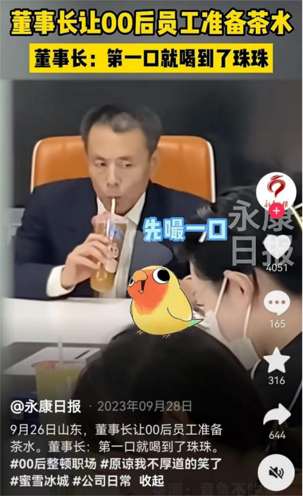 董事长开会被00后投喂蜜雪冰城,是新时代的向上管理。