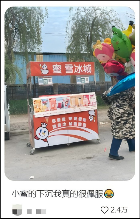 网友发现蜜雪冰城在“古冷偏僻”的地铁口做生意,而且卖得挺好。