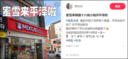 韩国平泽的蜜雪冰城,也成为一生都爱出片的韩国人的必打卡之地。