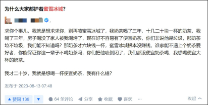 一句话总结,“不是别的喝不起,而是蜜雪冰城更有性价比。”