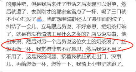 明明自己不小心泼了奶茶,店员还立刻表示重做。