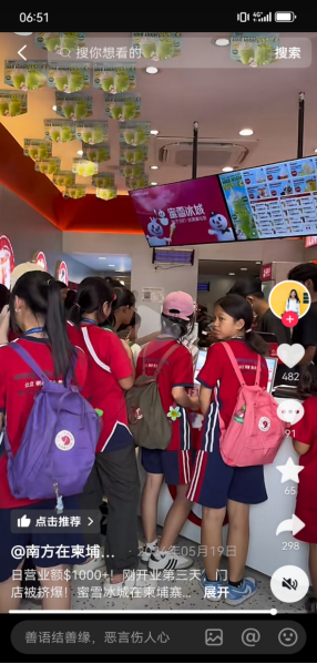而柬埔寨的蜜雪冰城,早已经被小学生挤爆。