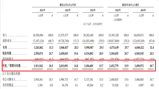 从2022年至2024年前九个月,蜜雪冰城的收入分别约为135.76亿元、203.02亿元及186.60亿元。同期,蜜雪冰城的净利润分别为20.13亿元、31.87亿元以及34.91亿元。
