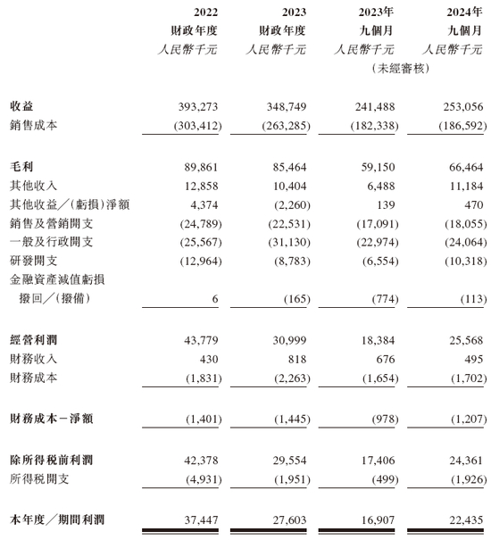 财务数据显示,在过去的2022年、2023年和2024年前九个月,容大合众的营业收入分别为人民币3.93亿、3.49亿和2.53亿元,相应的净利润分别为人民币3744.7万、2760.3万和2243.5万元。