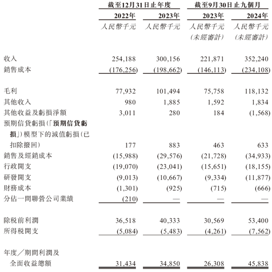 招股书显示,在过去的2022年、2023年和2024年前九个月,大行自行车的营业收入分别为人民币2.54亿、3.00亿和3.52亿元,相应的净利润分别为人民币3143.4万、3485.0万和4583.8万元。