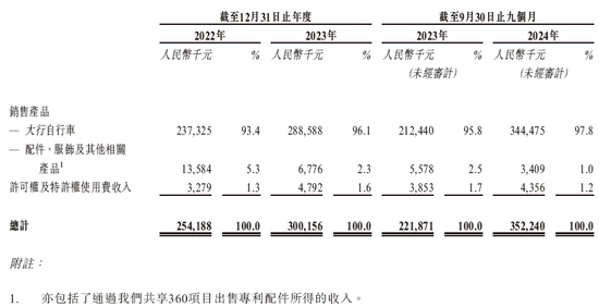 大行自行车的收入主要来自销售大行自行车。此外,也通过销售配件、服饰及其他相关产品,以及涉及公司共享360项目的权限及特许权使用费取得收入(包括来自固定权限费及依据共享品牌产品工厂交货价比例厘定的浮动特许权使用费收入)。