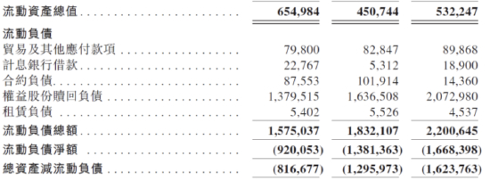 报告期内,劲方医药的流动资产总值分别为6.55亿、4.51亿、5.32亿,资产总额分别为7.58亿、5.36亿和5.77亿;流动负债总额分别为15.75亿、18.32亿、22亿,流动负债净额分别为-9.20亿、-13.81亿、-16.68亿,负债总额分别为16.05亿、18.53亿、23.13亿;资产负债率分别为211.74%、345.71%、400.87%。