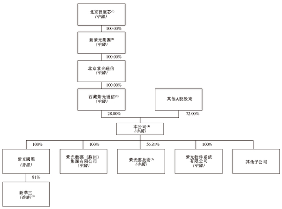 西藏紫光通信由北京紫光通信全资拥有,北京紫光通信由新紫光集团全资拥有,新紫光集团由北京智广芯全资拥有。北京智广芯由11名股东拥有,该等股东均无权于北京智广芯股东大会上行使或控制行使多数表决权,亦无法控制北京智广芯董事会多数成员的组成。