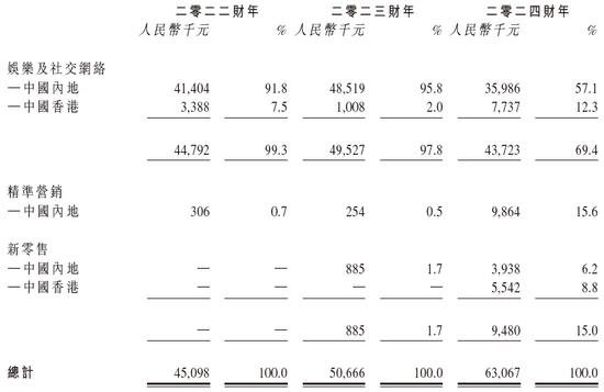 在线营销解决方案,公司自2024年6月起开拓了在线营销解决方案市场,主要向广告合作伙伴和直接广告主提供在线营销解决方案服务,以优化其广告投放,并通过在各种媒体平台上进行广告及流量获取以将曝光率最大化。