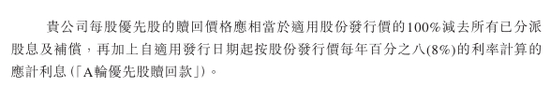 外界目光关注到,2021年12月15日,卡游曾发行一轮可转换可赎回A轮优先股,总对价1.35亿美元。在优先股的主要条款中提到,倘公司未能在优先股发行日期起计第五周年之前完成上市,投资者可要求公司赎回全部或部分发行在外优先股,同时按8%年化利率支付利息。