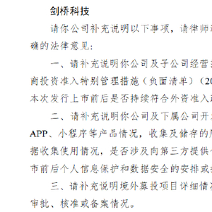 剑桥科技港股IPO收证监会反馈意见:需说明经营范围是否涉及外资负面清单 收集及储存用户信息规模及使用情况