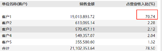 经营过度依赖单一客户,第一大客户营收占比达70%