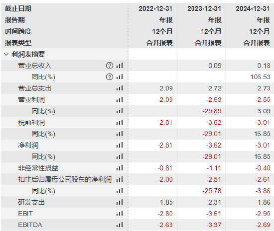 招股书数据显示,维立志博的财务状况呈现“重投入、零收入、巨亏损”的典型临床阶段特征。2023年、2024年及2025年一季度,公司分别录得净亏损3.62亿元、3.01亿元及0.75亿元,累计亏损超7亿元;同期经营活动现金流净流出分别为1.93亿元、1.19亿元及0.26亿元,资金消耗持续。