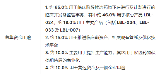 亏损的核心原因是研发开支高企。2023年研发费用达2.31亿元,2024年虽降至1.86亿元,但核心产品LBL-024单款研发投入即占总开支的25%以上。随着临床推进,未来试验费用、生产设施建设、人才引进等开支将进一步攀升。公司坦言,若无法通过上市募资或后续融资补充资金,可能被迫缩减研发计划。