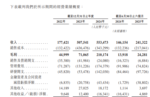 招股书显示,在过去的2022年、2023年、2024年和2025年前六个月,国星宇航的营业收入分别为人民币1.77亿、5.08亿、5.53亿和 2.41亿元,相应的净亏损分别为人民币0.91亿、1.39亿、1.70亿和 1.92亿元。