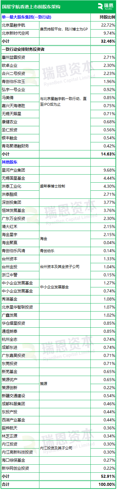 北京星融宇航(雇员持股平台,陆川博士为GP),持股22.72%;