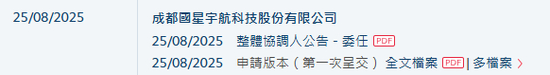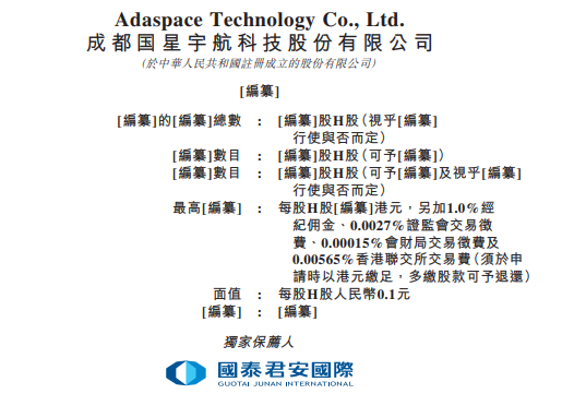 2025年8月25日,来自四川成都的成都国星宇航科技股份有限公司Adaspace Technology Co.,Ltd (以下简称“国星宇航”),向港交所递交招股书,拟香港主板上市。