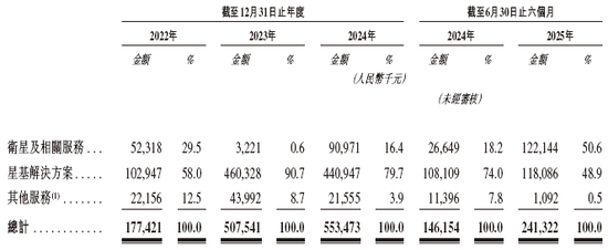 国星宇航的收入来自利用卫星遥感数据及灵境引擎的星基解决方案、卫星及相关服务(包括有效载荷、平台及卫星研发、组装、测试、发射协调、在轨交付及运营管理)、其他服务(包括智能停车解决方案及软硬件代理服务)。