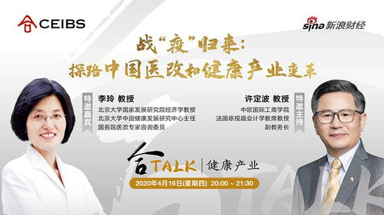 中欧国际工商学院“合Talk”直播系列第三期于4月15日20:00-21:30举行。北京大学国家发展研究院经济学教授、北京大学中国健康发展研究中心主任、国务院医改专家咨询委员李玲,中欧国际工商学院法国依视路会计学教席教授、副教务长许定波对谈“战疫归来:探路中国医改和健康产业变革”。