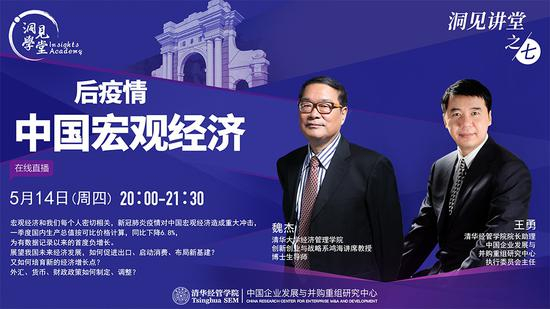 由清华经管学院中国企业发展与并购重组研究中心主办的”洞见讲堂“于5月14日20:00-21:30举行第六期。主题为“后疫情中国宏观经济”。