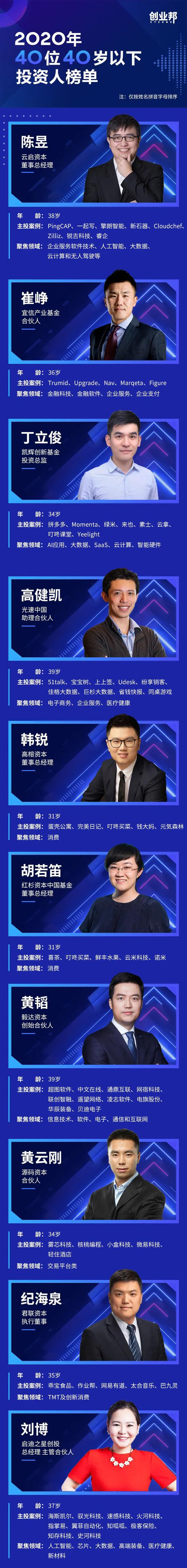 重磅 | 创业邦2020年40位40岁以下投资人榜单发布