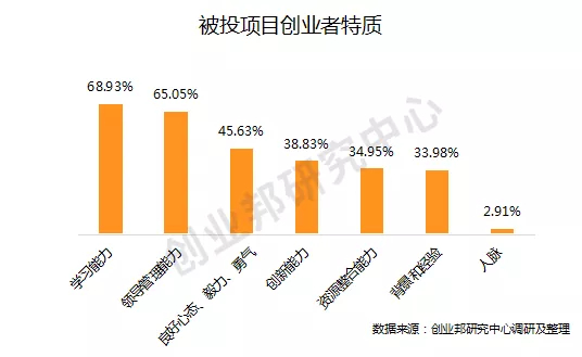 调研数据显示,参评投资人最为看好拥有极佳学习能力的创业者,其次会选择具备出众领导管理能力和良好心态。创业市场风云变幻,因此,优秀的创业者需要不断学习和充电,补充新知识达成新技能,同时还要在团队领导管理方面不断尝试,积累经验。