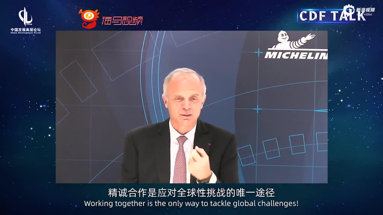 孟立国:我想说,作为一名在米其林供职20余年的员工,能在2019年成为米其林集团的CEO是我莫大的荣幸。我深知前路充满挑战,必须未雨绸缪。但根本没想到会有新冠疫情这样的危机爆发,并震动了整个世界。与疫情的战斗仍在继续,感谢中国发展高层论坛,让我有机会与大家分享一些感想。