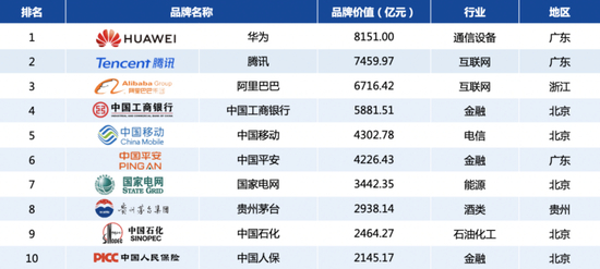 2020中国品牌500强揭晓:华为腾讯阿里巴巴进入前三名