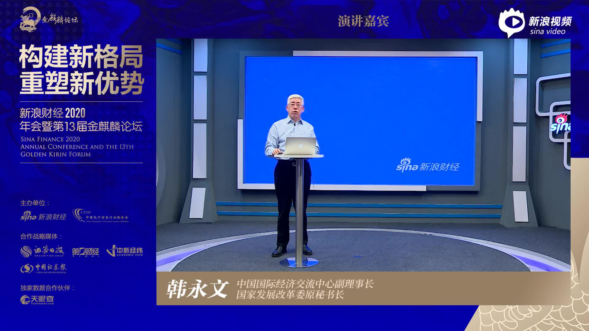 12月9日,新浪财经2020年会暨第13届金麒麟论坛在北京举行。本届论坛的主题为:聚焦“十四五”——构建新格局 重塑新优势。论坛期间,中国国际经济交流中心副理事长、国家发展改革委原秘书长韩永文发表了题为《促进国内循环和国际循环良性互动》的主旨演讲。