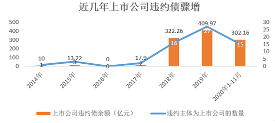 (1)违约主体为上市公司的违约债不断增加
