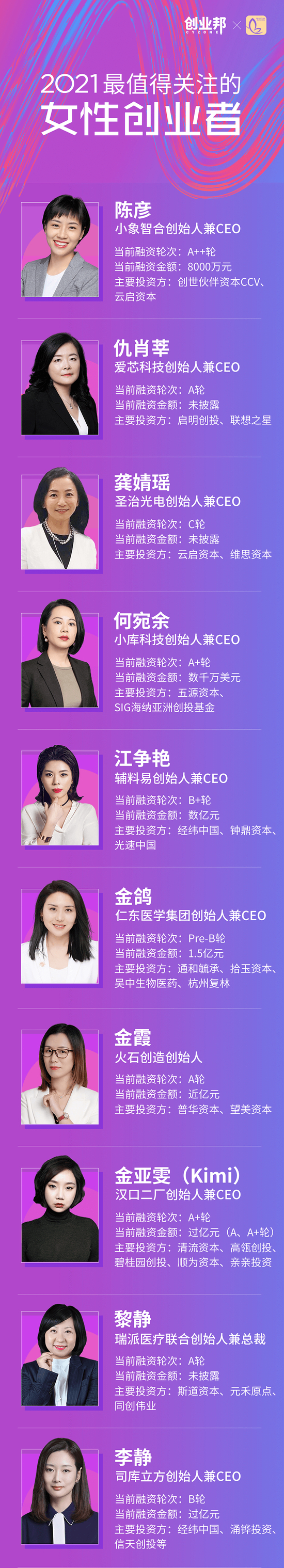 30位创业女神,创业邦2021最值得关注的女性创业者榜单重磅发布