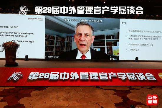 “第29届中外管理官产学恳谈会”于2021年3月27日-29日在北京举行。会议主题为:2021双循环时代的“核”引擎。海尔集团总裁周云杰出席会议并发言。“隐形冠军之父”、西蒙顾和咨询公司创始人赫尔曼·西蒙出席会议并发言。