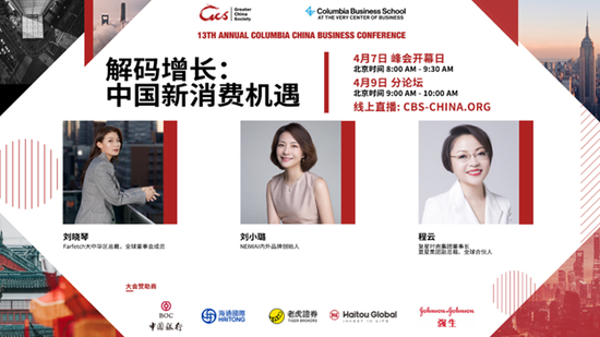 明天(北京时间4月7日)早上8点,第十三届哥伦比亚大学中国商业论坛将正式拉开帷幕,为你呈现一场大咖云集、各家观点齐放的思想盛宴。本次论坛将首次免费对公众开放,为期四天,以线上峰会的形式进行,并提供中英同传翻译,让全球青年都能有机会与我们一同“对话”当前中国不断变化中的挑战与阻碍、“探索”未知的前行路径、“破局”未来的发展机遇。