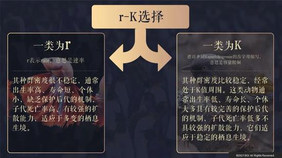 对于种群来说,繁衍通常有两类选择——r-K选择。(r表示rate,意思是速率;K的意思是容量限制。)