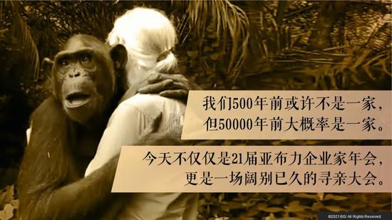 关于人类起源,目前的主流学说是“非洲起源说”——所有的智人都来自于非洲。从这个意义上讲,我们500年前或许不是一家,但是在5万年前,都以南方汉族、北方汉族这两大脉来看,我们大概率是一家人。今天,不仅仅是亚布力论坛第二十一届年会,更是一场阔别已久的“寻亲大会”。