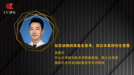 主题为“和而不同,思想无界”的CC讲坛第44期演讲于2021年8月28日在北京以在线直播方式举行。来自中山大学航空航天学院国际仿生学会ISBE最佳学术贡献奖获得者吴嘉宁副教授出席并以《站在动物的角度去思考,回归本真的仿生智慧》为题发表演讲。